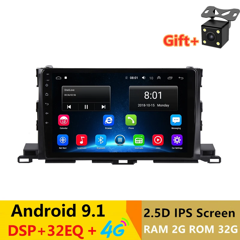 Note before ordering: 1.Free shipping not free tax, tax charged by your custom not include in the price, the customer from USA and Russia, usually no need to pay tax. If you come from Europe, except Switzerland,Ireland,Bulgaria,you can choose NO VAT option, we send it by special way, we clear the custom and pay the tax in advance, you do not need to pay tax. The NO VAT option is only for Europe customer. 2.Warranty The fault of the product usually caused by bad shipping or wrong installation, if the product has problem, please contact us before open a dispute, we will provide a good solution for you. We provie 1 year warranty for each product. 3.This product was produced by a listed company, who also produce the original gps navigation for Nissan,Honda,Toyota... with stable quality. Car dvd player with navigation For Toyota Highlander 2015 Note: We have done our best to ensure this item is compatible with the listed cars, but please ensure you have the correct shape / size OEM unit before purchasing. Main FEATURES: 1.Systemversion:thesystemversionisandroid9.1,thecpucoreisandroid6.0,itdoesn'taffecttheprogramspeed,ifyoucareitstrongly,pleasedonotbuy!,which enable you to get access to thousands of apps,like Twitter, Facebook, Youtube, Gmail and other Google Services. 2.Quad-Core CPU ARM Cortex A53, 2GB RAM, 32GB Nand(system will occupy some memories, about 25.7GB available) 3.1024*600 Capacitive screen,2.5D IPS screen 4.Built-in Wifi and 4G 5.Suppport 1080P Video 6.Support OBD and DVR 7.OSD Languages: Chinese (Simplified), Russian, Spanish, Turkish, Russian, Hebrew, Italian, Chinese (Traditional), Arabic, French, German, English, Portuguese, Korean, Thai and so on... 8.Built-in GPS 9.Dual zone function (can listen to the music or Radio while using GPS navigation software) 10.Built-in Bluetooth Hands free and Phone book, support A2DP, play music via phone. 11.FM/AM Radio 12.Support HD 2D & 3D maps 13.2 USB cable 14.Support Rearview camera 15.Support Steering Wheel Control 16.4X50W maximum power output, with DSP 32EQ AMP 7850 17.Optional External DVB-T, ISDB-T, ATSC digital TV,4G wifi dongle,OBD,Rear camera Big screen, No dvd funciton Package include: Power cable,RCA cable,USB cable,GPS antenna,Radio antenna(different car,different)