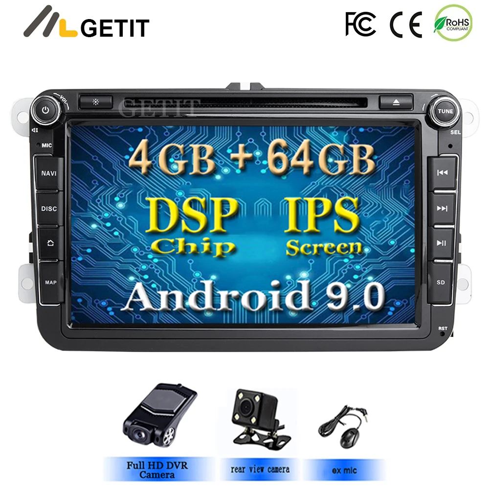 DSP IPS Car Multimedia player Android 9 GPS 2 Din Car Radio Audio Auto For VW/Volkswagen/POLO/PASSAT/Golf 8 Cores RAM 4G 64G