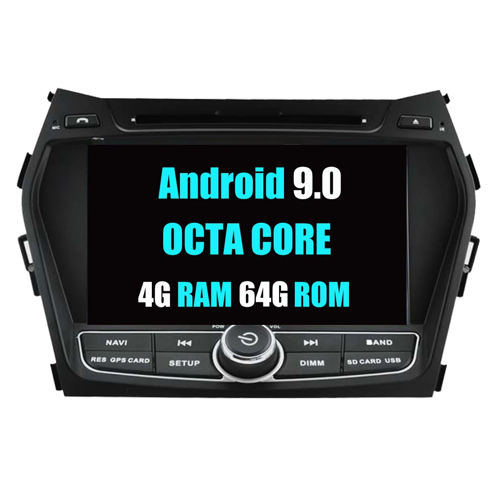 Android 9.0 Car Navigation MultimediaSystemfor Hyundai IX45 Santa Fe 2013+ Advanced Android 9.0| Octa-Core| 1080P HD| PX5CPU| Touch Screen| Steering Wheel Control 4G RAM + 64G ROM + IPS Panel + PhoneLink + Radio AM FM+ Navigation+Bluetooth + 3GWIFI