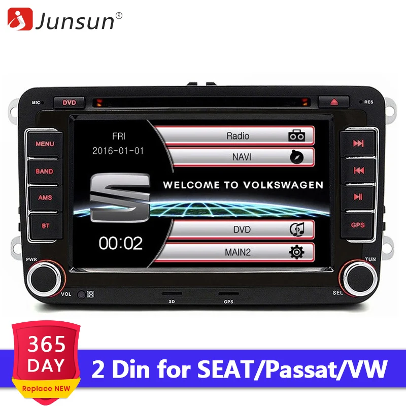 AliExpress Top 10 Brands, worth to trust;Junsun Official Storehas 1000K + fans, popular among customers. All products have been passed strict quality test before shipment, make sure high quality. After verify payment will ship out within 48H from China warehouse, and 24H ship from local warehouse, ES,EU,RU,PL Warehouse Delivery.(Working day time) If the product has a problem within 365 DAY after confirming the receipt, we will replace the new machinedirectly for you,But Please contact us first to resolve the after-sales problem. This warranty does not apply to damage caused by accident, abuse, misuse, or modification of the product. We will have wholesale prices for VIP customers. If you purchase more than one device, please contact us and we will give you the VIP price! ! ! 1, 7 inch 2-DIN touch screen capacitive screencar multimedia player. 2, Use for VolkswagenSeat Leon2 / Altea Toledo /Skoda /Octavia / Fabia / Roomster / Yeti/VW / Touran Passat. 3, For high version of VW, external CANBUS,Support steering wheel setting and control. 4, Support Rear-view camera and front camera input. 5, Built in Bluetooth for mobile hands-free, convenient and safe. 6, RDSRadio,FM/AM with available for any market. (Europe, Australia, South America, North America, Russia, Japan, etc.) 7, GPS Navigation, update map in free 8, Support Car Information, see car information in one screen. 9, Support 480P RMVB video play, RGB high definition image. 10, DVD playback compatible withAVI/DVD/DVD+R/DVD-R/DVD+RW/DVD-RW/VCD/MP3/CD/CD-RW/JPEG. 11, Support rear camera and reversing parking line. 12, Support Full RCA Output, share entertainment together. 13, Language: Russian / English /Italian / Portuguese / Spanish / Arabic / Turkish / German / French. Button Light Color Adjustable There are total 7 options for button light color. you can choose the color that you like. How to make sure our 2 din car dvd fit for your car? This is a universal DVD for VW with itemsize: 220*208*130mm. For some vehicles needs to buy a extra frame in Alibaba or local store. We can’t promise here that our device will be 100% compatible with all above listed vehicles. Please checkModel, Year, and Sizecarefully before purchase. Free to change the product interface LOGO At the main interface continuously press VW, Skoda, seat or signal, the indicator is set to enter the interface, select the logo you want to change Supports steering wheel control For the high version of VW, a function of CANBUS protocol boxes, supports steering wheel control Car Information Show car important information on the multimedia player, more easy and convenient to read. Notice: it can only show the information as the original car’ information. DVD player DVD player compatible with AVI / DVD / DVD + R / DVD-R / DVD + RW / DVD-RW / VCD / MP3 / CD / CD-RW / JPEG. Poyo NaCunKa locked playback /but for under 800 * 480 and compatible with video MP4 format Full RCA Output Get together with your friends or families and entertainment simultaneously on the car DVD player via the RCA video output function to other monitors. > Detailed Maps with Free Updates 1, beautiful 3D landmarks, buildings,parks and mountains,help you find your bearing in unfamiliar areas. Driving with Sygic GPS Navigation is both practical and enjoyable. 2, precise distance to each maneuver will guide you to your destination. If you miss a turn our smart algorithm will immediately recalculate to get you back on your way. > Navigate Complex Interchanges with Ease Junsun GPS Navigation has lane assist with junction view that displays upcoming junctions and uses brightly colored arrows to indicate your proper lane. and easily navigate complex interchanges. > More Information at a Glance The device keeps your driving map onscreen at all times and additional information appears alongside. For details, simply ask or touch the screen. As you drive your route, Up Ahead constantly informs you of nearby services, including fuel stations, hospitals . > About Installing maps Support Europe / North America / South America / Southeast Asia / Middle East map (We will install map according to your address, such as: the United Kingdom, we will install the map of Europe) Note: About the map, if you want to update the map, please contact us, we will upload itto the "Drop box", please do not download in other places, otherwise it will damage the original map. Update map time: once a year . FM Switching Range Support FM radio stations can be realized the original radio effect. Support Radio with RDS, AM Frequency Range:522-1620KHz; FM Tuning Range:87.5-108MHz Bluetooth Handsfree Phone Connect your smart phone and dvd by bluetooth function,you could make and receive calls directly from the car dvd itself with the built-in MIC and speaker. It can also play music by Bluetooth, and make your hand free for safe driving. Auto reverse Parking view When the car in Reverse Gear, this car DVD will automatically switch to the back-up camera image view with parking line. Take out the 2 screws before installation! Installation Tips 1. Check there is no damage on the packing you received. 2. Check there is no damage on products. 3. Test functions before install into your car; use 12-14v power supply connect and check functions. 4. Check your car information carefully. If your car can't check from our page,it might not compatible, please don’t install it. For high allocation cars with canbus, you need to cut off the cables. 5. After installed, please check if it can turn off when your car turn off. if not, please contact us. NOTE: To make sure it can work well with your car, please try to make a test with our installation tips strictly. Q:How to check low or high allocation cars? A: High allocation cars: 1. by the end of 2014: cars with canbus; 2. Beginning in 2015:cars with canbus or show door information, Air conditioning information,etc. Low allocation cars: cars without canbus. Please cut off the red(ACC) and orange cables installi